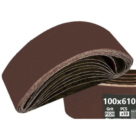 CENA ZA OPAK. 10 SZTUK - Sprawdzona JAKOŚĆ - Pasy bezkońcowe 100x610 gradacja 220 - na płótnie , ziarno elektrokorund, spoiwo żywica to najlepsze atuty tego produktu, jeśli dodamy do tego cenę otrzymamy dobry produkt w dobrej cenie!