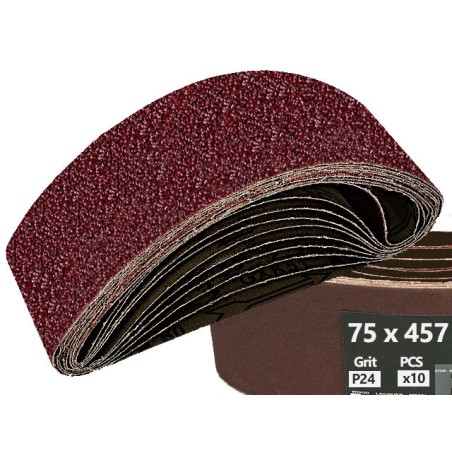 CENA ZA OPAK. 10 SZTUK - Sprawdzona JAKOŚĆ - Pasy bezkońcowe 75x457 gradacja 24 - na płótnie , ziarno elektrokorund, spoiwo żywica to najlepsze atuty tego produktu, jeśli dodamy do tego cenę otrzymamy dobry produkt w dobrej cenie!