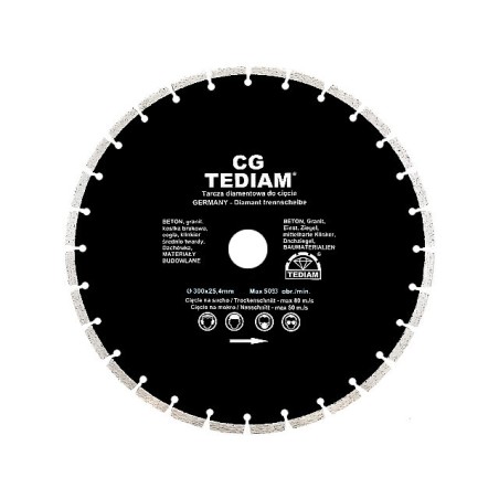 WYTRZYMAŁE - WYSOKI SEGMENT (segment aż 10mm) - Z CZARNEJ WZMACNIANEJ SERII CG - UNIWERSLANE TARCZE DIAMENTOWE SEGMENTOWE ŚREDNICA 300 mm - Otwór 25.4 + na życzenie redukcja na 20 !