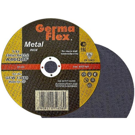 Tarcze do cięcia metalu znanej od wielu lat marki GERMAFLEX. Ostrzejsza - wytrzymalsza - PRAWDZIMY INOX a nie mieszanka jak w przypadku tańszych odpowiedników - w rozmiarze 180 x 1.6