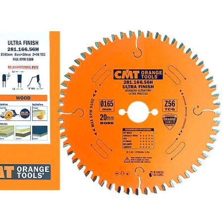 CMT - Najwyższa jakość - Maksymalna żywotność - Specjalistyczna powłoka P.T.F.E. - kontrola jakości na każdym etapie produkcji = Jeden z czołowych liderów w swojej dziedzinie! Tarcza 281.166.56H - WERSJA XTREME - zalecana przede wszystkim do cięcia poprzecznego i wzdłużnego płyt laminowanych z idealnym wykończeniem krawędzi o średnicy 165 mm x otwór 20 mm (potrzebna redukcja na 16 mm napisz w komentarzu, dołożymy) x 56 Zębów