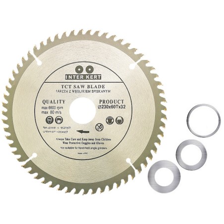 Dobre - Mocne - Sprawdzone - Znanej od lat firmy INTER-KERT i do tego w SUPER CENIE jak za swoją jakość. Tarcze widiowe do cięcia drewna o średnicy 230 mm x otwór 32 mm (potrzebna redukcja na 30,28,25.4 mm napisz w komentarzu, dołożymy) x 60 ZĘBÓW