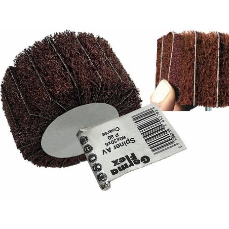 Włóknina Ścierna przekładana wersja COMBI w rozmiarze 60x30x6 gradacja COARSE (odpowiednik P80) - Wszechstronne zastosowanie, idealne do nieregularnych kształtów, odporne na zapychanie, lepsze chłodzenie to największe zalety włóknin ściernych - jeśli jeszcze dodamy do tego dobrą jakość za świetną cenę otrzymamy produkt godny polecenia renomowanej i uznanej firmy Germaflex o średnicy 60mm i Grubości 30mm - trzpień mocujący 6mm !
